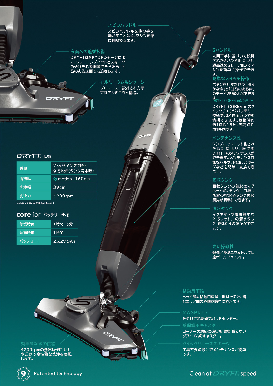 DRYFT(ドリフト)は、世界初のS字モーション式床洗浄機